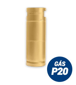 O gás P20 é comercializado em cilindros de 20 Kg e utilizados em empilhadeiras. Estes cilindros são projetados para utilização na posição horizontal, já que todo o consumo se dá na fase líquida e não na gasosa, como acontece nos demais recipientes. Dimensões: diâmetro 312mm x altura 895mm.